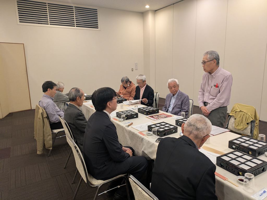 その後、懇親会では武井氏(22期)の乾杯発声の後に、親睦を深めました。光星中学時代の話や、当時の交通状況など、光星の思い出話で盛り上がる楽しいひとときでした。締めを目黒氏(22期)が務め楽しいひとときもあっという間に終わりました。